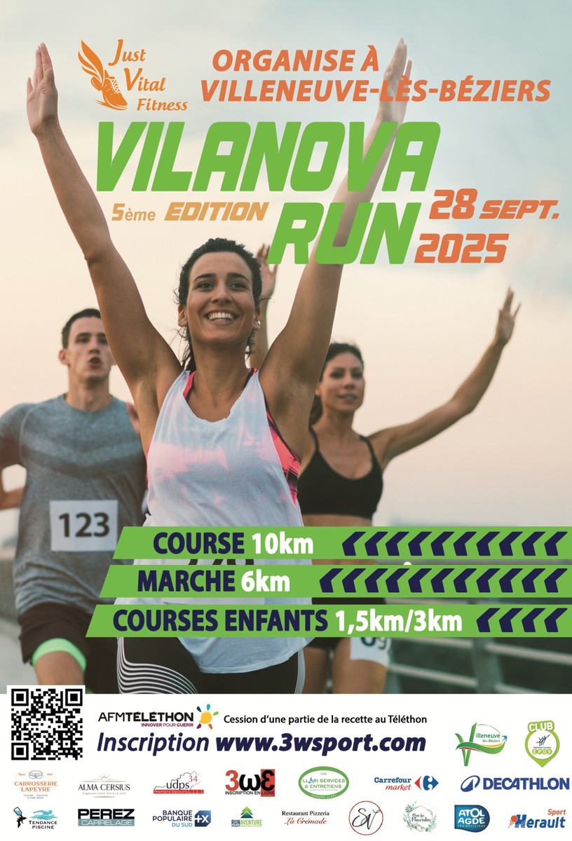La 3ème édition de la Vilanova Run avait lieu ce dimanche, course pédestre chronométrée de 10 km sur route, organisée par l’association Just Vital Fitness, le concours de la mairie de Villeneuve-Lès-Béziers et le partenariat de la Cave Alma Cersius.